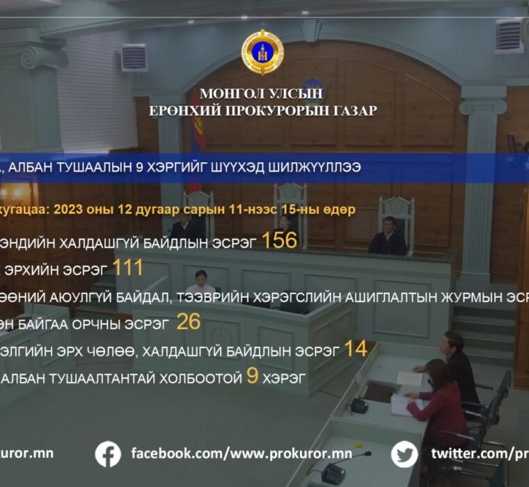 Шүүхийн ерөнхий зөвлөлийн судалгааны цахим сангийн нээлт өнөөдөр (2023.12.18) боллоо. Нээлтэд ШЕЗ-ийн дарга, гишүүд, ажлын…