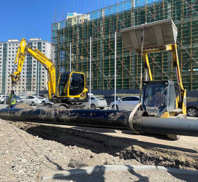 Төв цэнгэлдэх хүрээлэнгийн гадна талбайд ус зайлуулах шугам угсарч байна