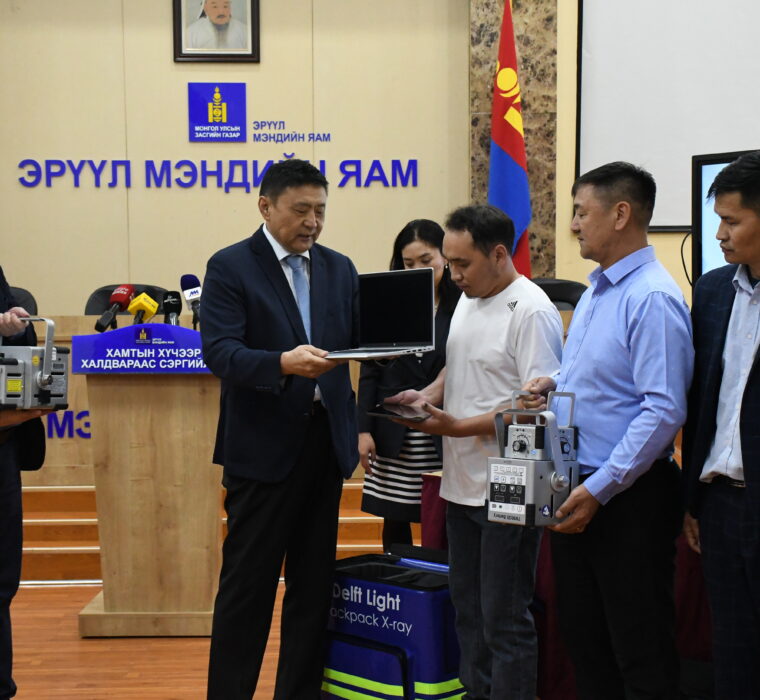 Сүрьеэг илрүүлэх “Хаалганаас хаалганд” үзлэгт ашиглах зөөврийн дижитал рентген аппаратыг хүлээлгэн өглөө