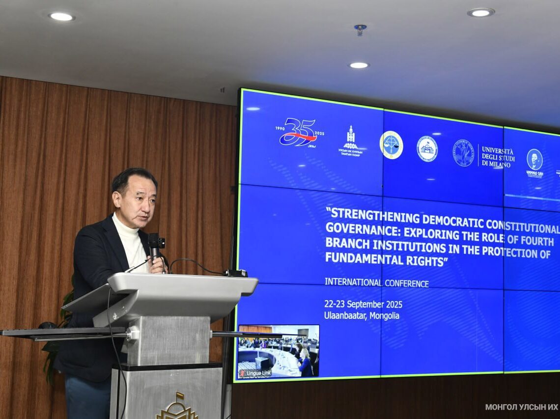 Монгол Улсын байнгын ажиллагаатай парламентын 35 жилийн ойг тохиолдуулан Улсын Их Хурлын даргын ивээл дор зохион байгуулж буй “Ардчилсан Үндсэн хуульт засаглалыг бэхжүүлэх нь: Үндсэн эрхийг хамгаалахад хөндлөнгийн хараат бус төрийн хяналтын байгууллагуудын үүрэг, оролцоо” сэдэвт олон улсын эрдэм шинжилгээний хурал өнөөдөр /2025.09.22/ эхэллээ.
