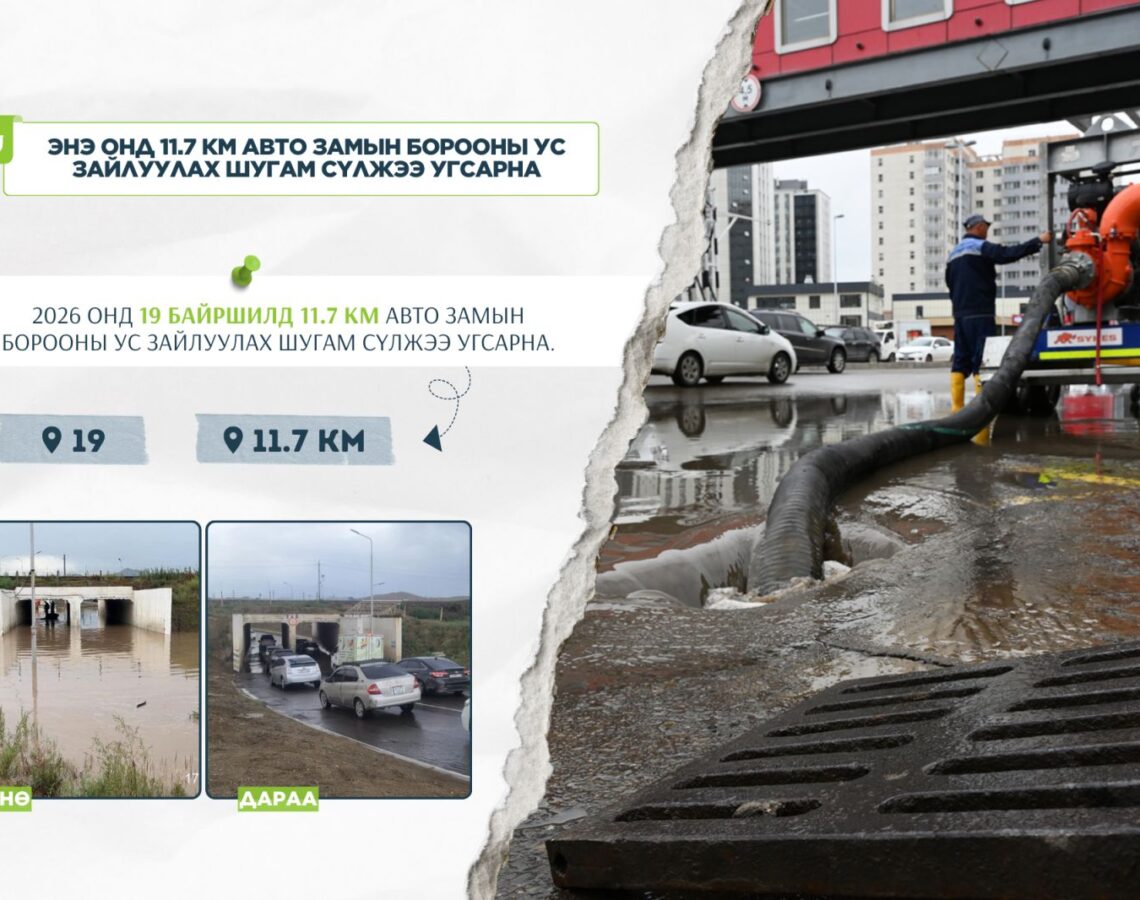 - Нийслэлийн зургаан дүүргийн авто замын борооны болон хөрсний ус зайлуулах 217 км шугам сүлжээний 4034 шүүрт худаг, 4171 ширхэг үзлэгийн худгийн лаг цэвэрлэгээний ажлуудыг тус тус хийж гүйцэтгэнэ.