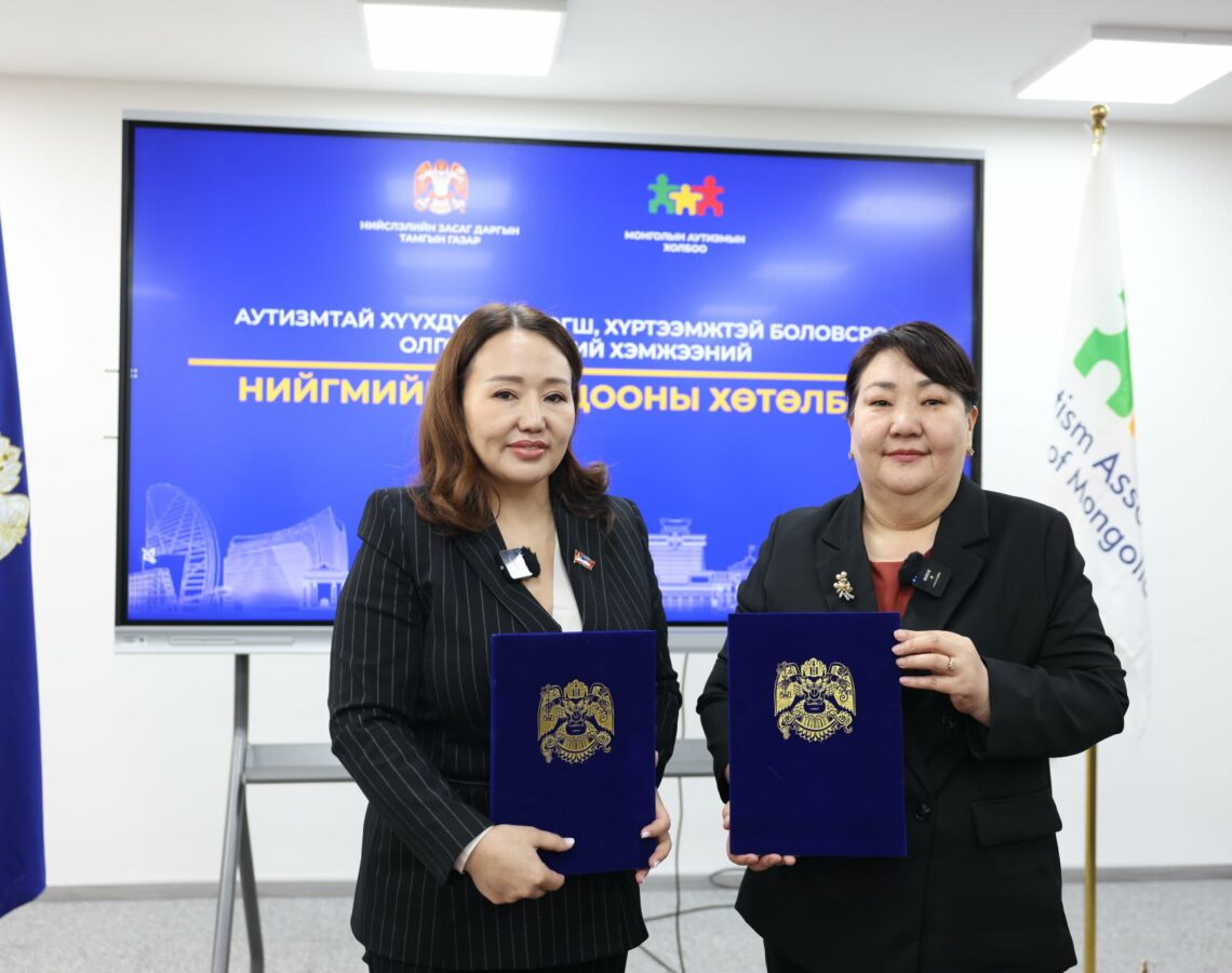 Хөгжлийн бэрхшээлтэй болон аутизмтай хүүхдэд тэгш, хүртээмжтэй боловсрол олгох олон улсын шилдэг туршлагад суурилсан нийгмийн оролцооны хөтөлбөрийг 2026-2030 онд хэрэгжүүлнэ. Энэ хүрээнд нийслэлийн Санхүү, эдийн засаг, хөгжлийн бүтээн байгуулалтыг эрчимжүүлэх төсөл, хөтөлбөрийн зохицуулагч Л.Хосбаяр Монголын аутизмын холбооны НҮТББ-ын зөвлөх Л.Алтангэрэл нар хамтын ажиллагааны санамж бичиг байгууллаа. Тус хөтөлбөрийн эхний үе шат энэ ондоо хэрэгжих бөгөөд эхний ээлжид судалгаа, хэрэгцээг тодорхойлж, туршилтын сургуулийг сонгоно. 2027-2028 онд бодитоор турших, сургалт, сургалтын орчны шинэчлэлийг хийнэ. Хөтөлбөрийн III үе шат 2028–2030 онд хэрэгжих бөгөөд энэ хугацаанд үнэлгээ хийх, өргөтгөх, бодлого болон стандартад тусгах ажлыг зохион байгуулна.